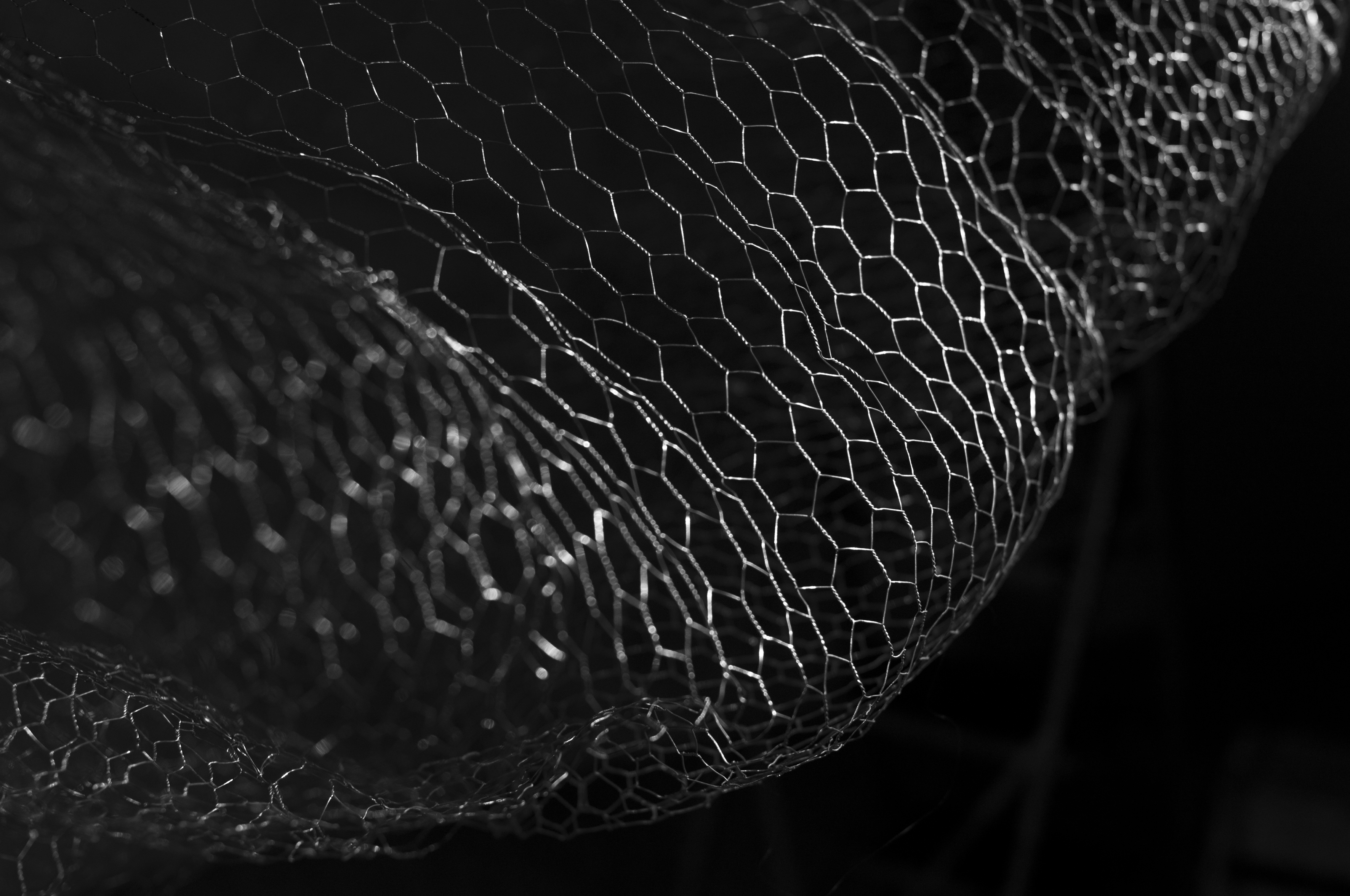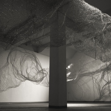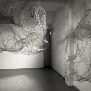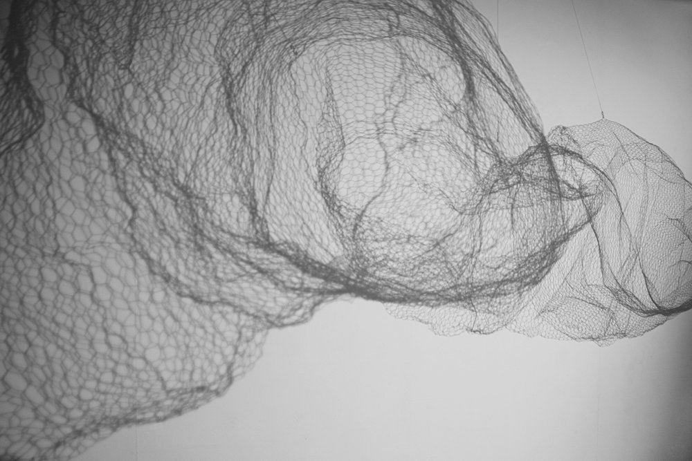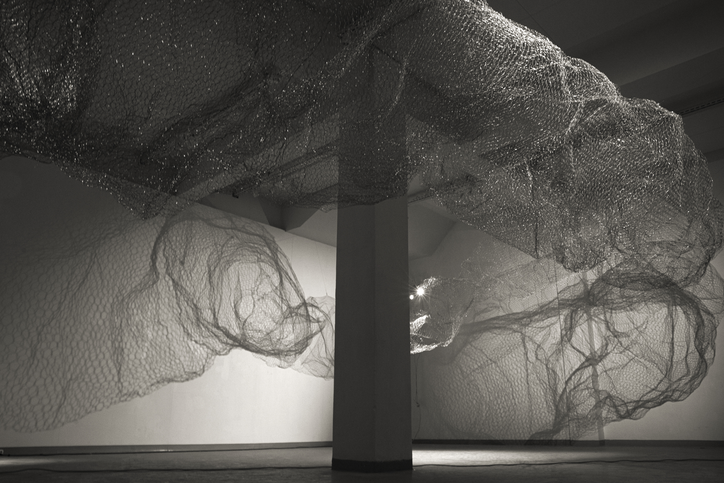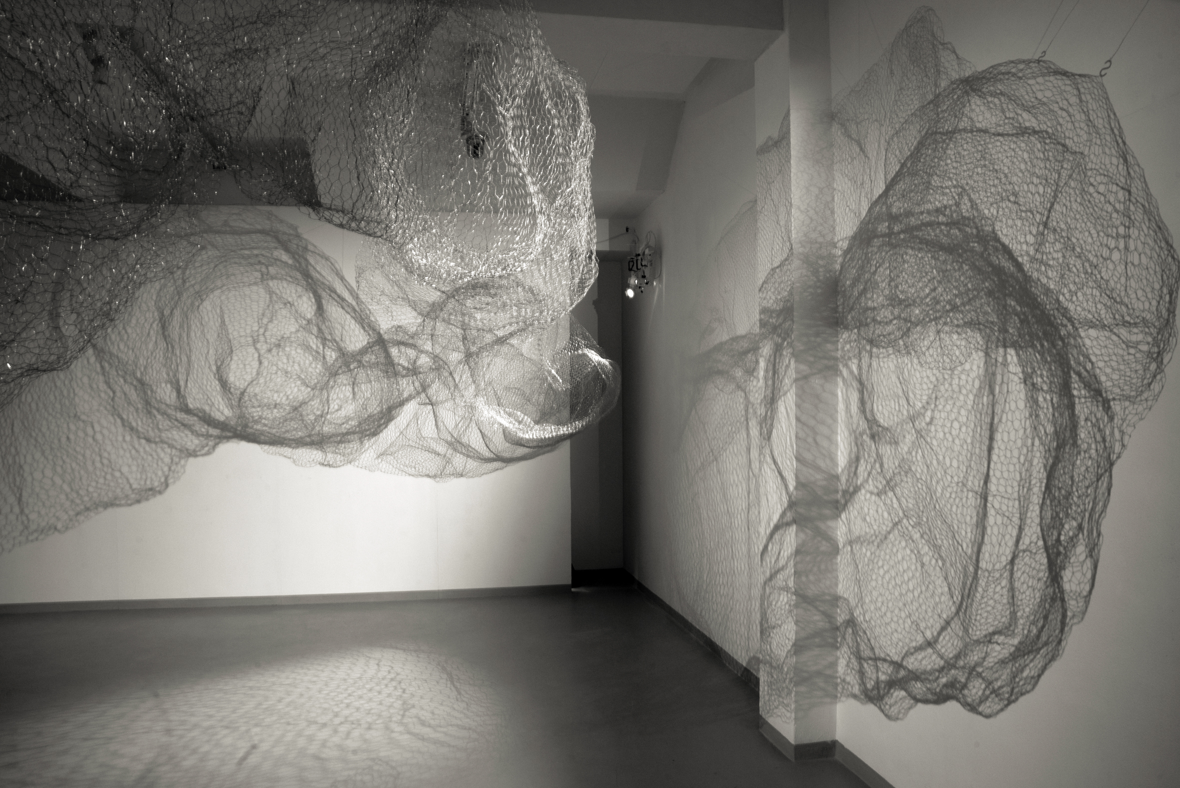 Akkurat nå har du trådt inn i et rom der en skulptur utformet i hønsenetting dominerer rommet. Eller er det lyset og mørket som spiller rundt skulpturen som er det mest iøynefallende? Eller kanskje er det avgjørende skyggerissene som skulpturen danner på veggene i møtet med lyset?